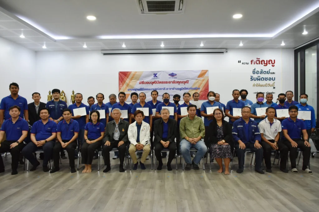 ให้เกียรติเป็นประธานพิธีมอบวุฒิบัตรและอาร์มคุณวุฒิมาตรฐานฝีมือแรงงานแห่งชาติ สาขาช่างอลูมิเนียมก่อสร้าง ระดับ1และ3 จำนวน42คน ที่ผ่านการทดสอบจาก ศูนย์พัฒนาและทดสอบฝีมือแรงงานกลุ่มบริษัทเกษม ณ ห้องประชุมKYS กทม. เมื่อ 24 มกราคม 2567